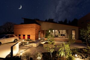 お家とお庭のトータル設計や計算された照明計画による夜のライトアップが美しく
